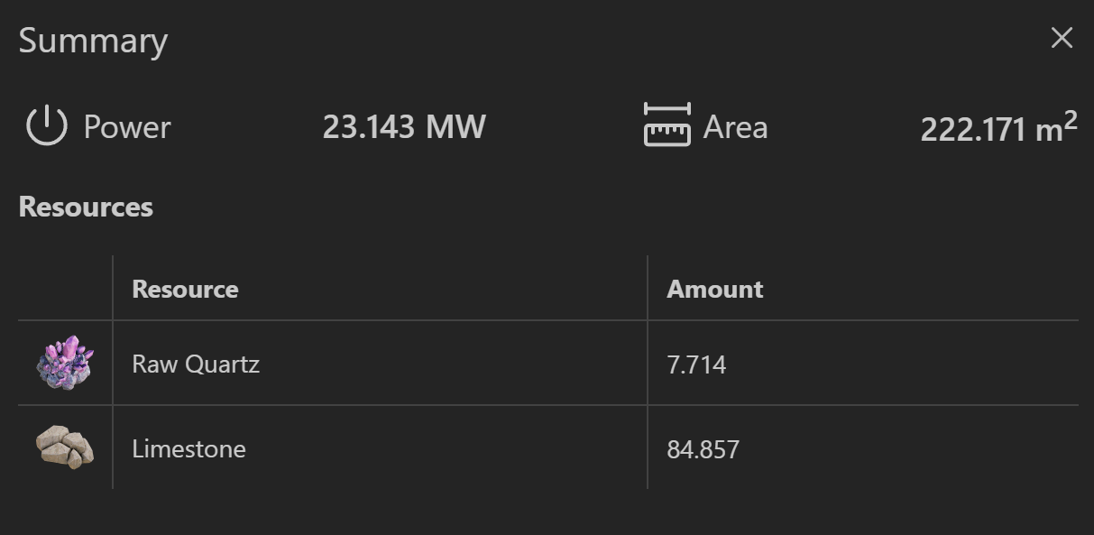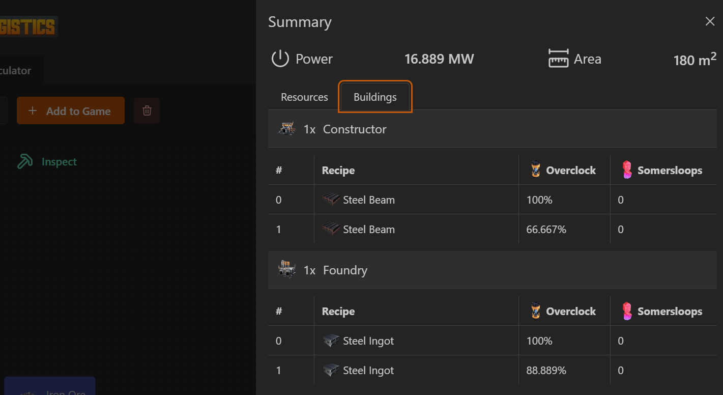 In the summary drawer you will now find a new “Buildings” tab which displays more detailed information about the machines needed for the plan.