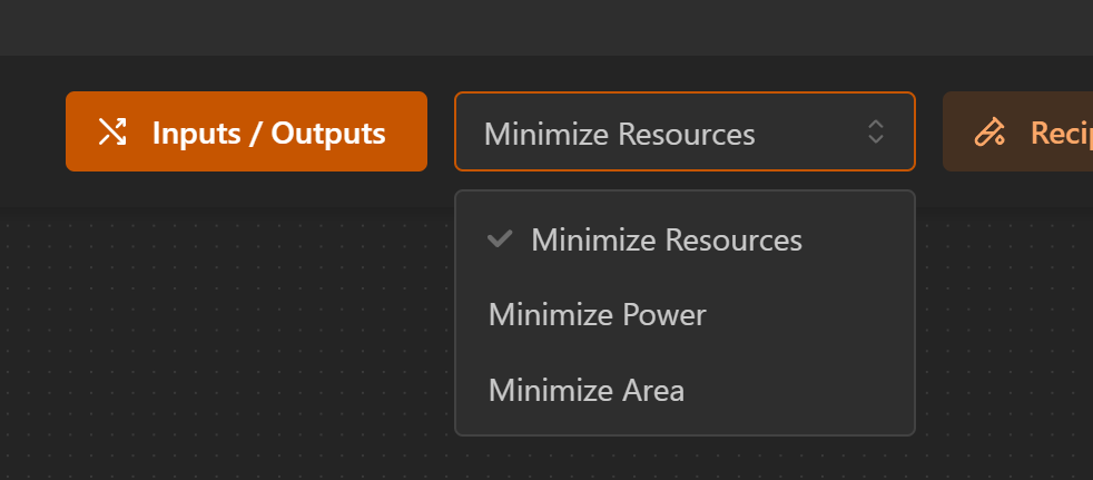 In this preliminary update, we’ve added the ability to choose a different optimization method: do not fear, it’s just a select away. Choose if you desire a more compact factory or a not-so-power-hungry build, then see the result!