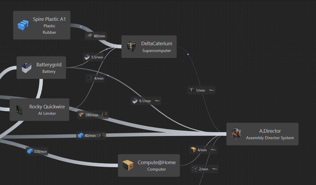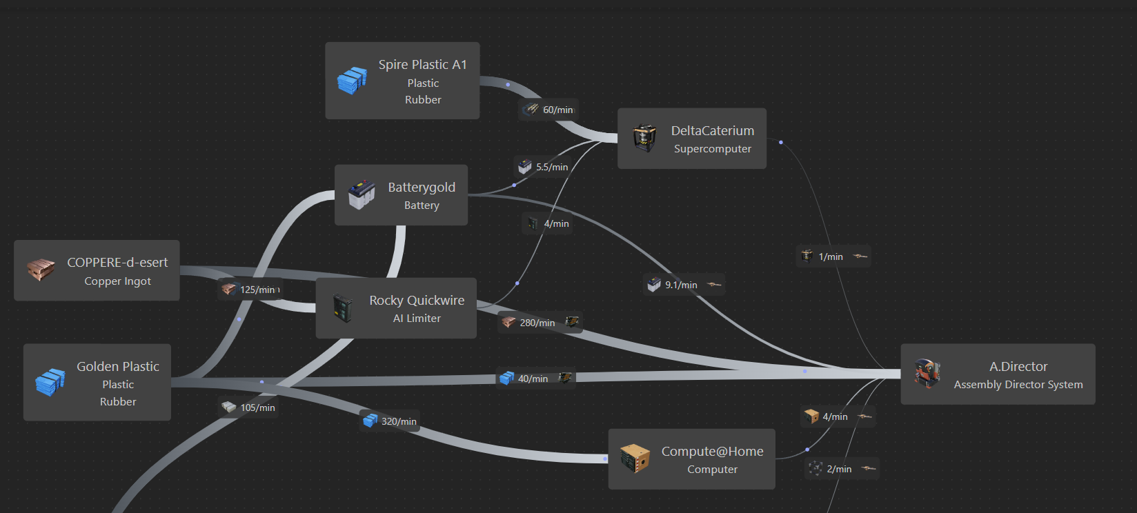For every input you can indicate the transport method. These choices are displayed in the brand-new “Graph” display in the Charts tab: it’s like the calculator, but for factories