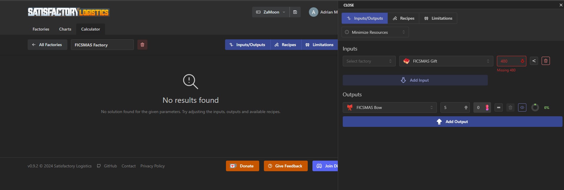 I try to make a FICSMAS factory. I added gifts as input, enabled ornaments and all those recipes but it keeps saying “No results found”